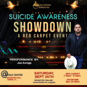 $500.00Register today to reserve your vendor table at the Suicide Awareness Showdown at The Straz Center in Tampa, FL. Your organization will have access to all event guests and can pass out literature, resources and engage our attendees.
